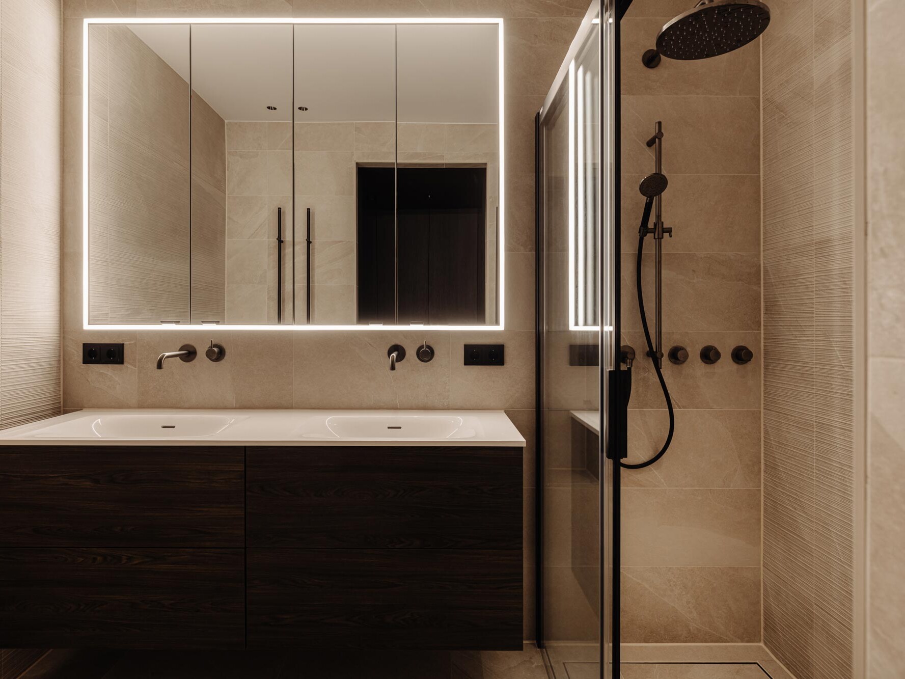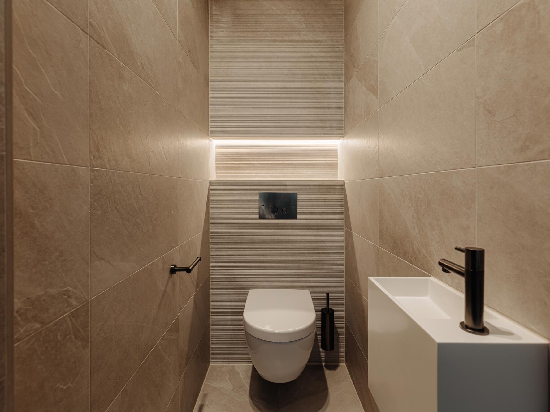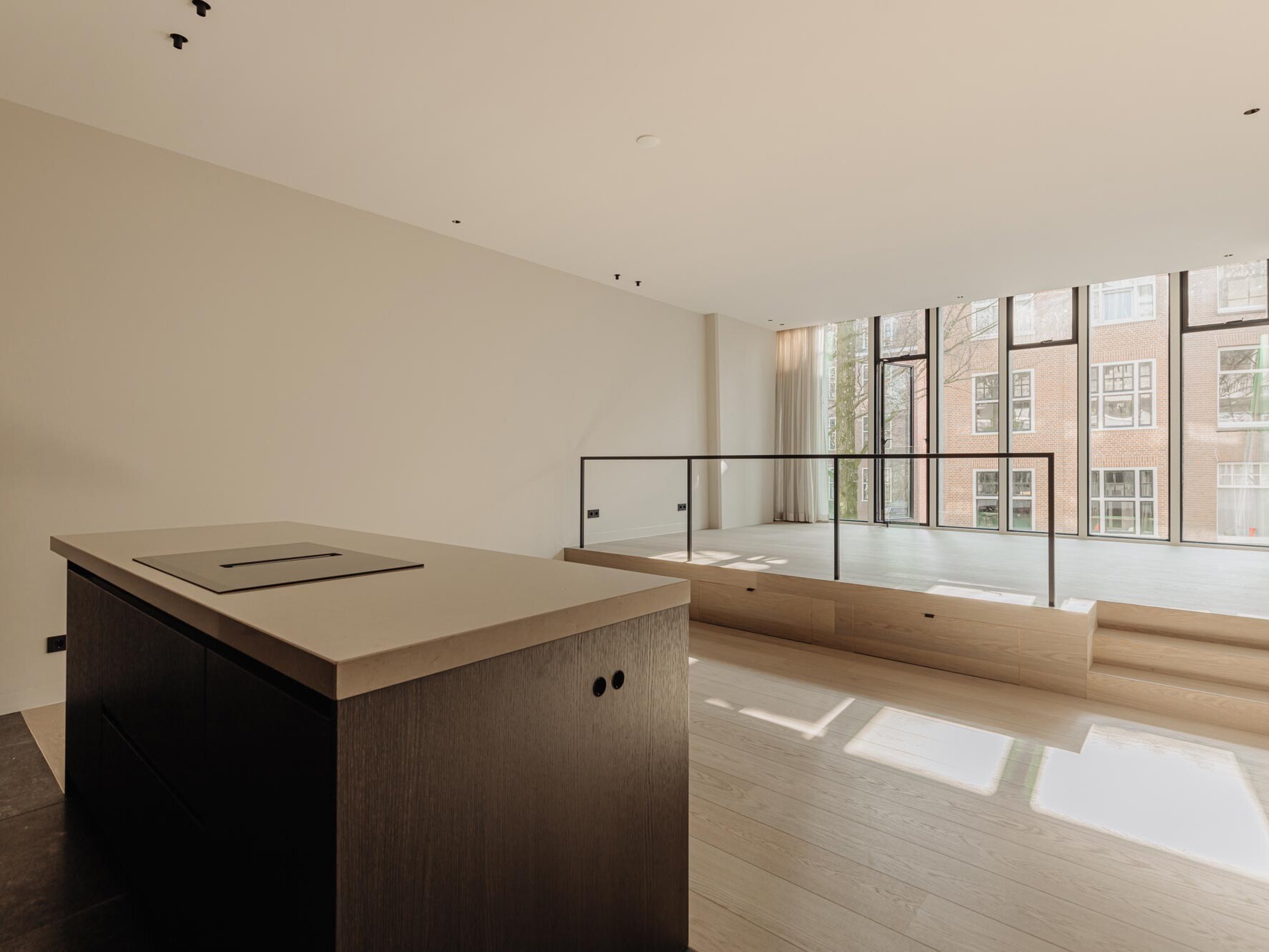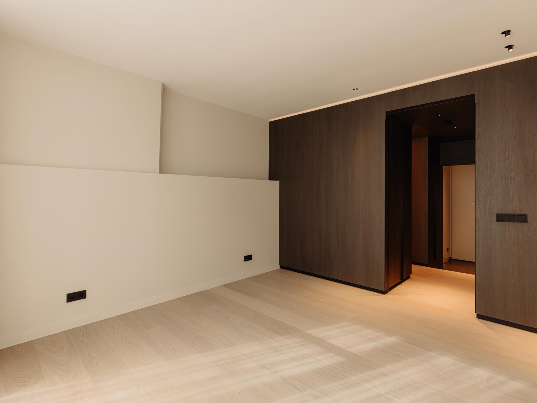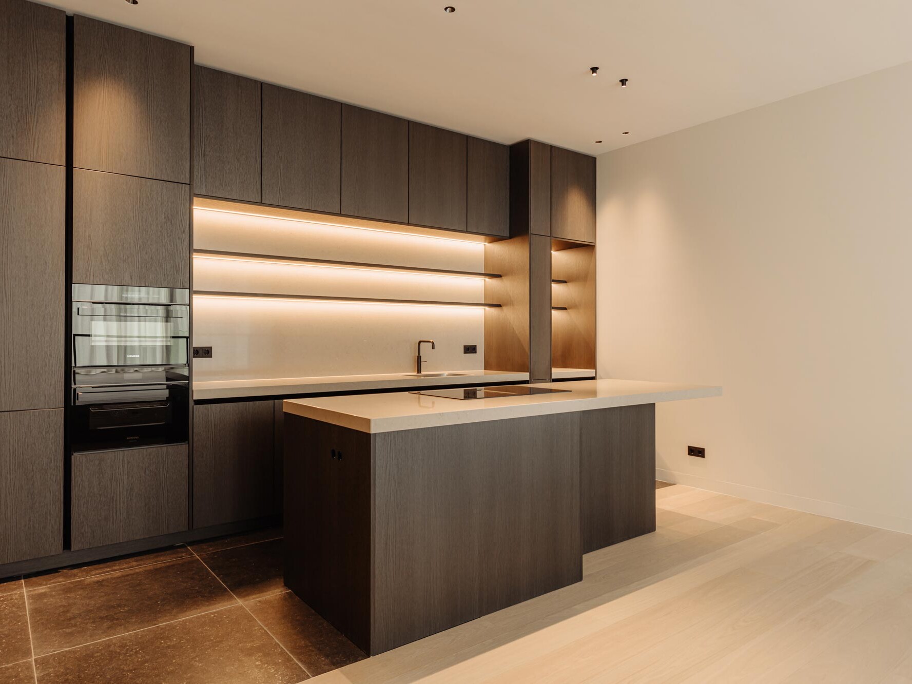 Entrance, hall, technical room, fully tiled toilet room with sink and various accessories, wonderful Siematic open kitchen with cooking island, mood lighting and Siemens built-in appliances including an induction hob with integrated extractor, fridge-freezer, dishwasher, oven, oven/microwave, Pando wine cooler and a Quooker, split level living room with storage space, bedroom accessible from both sides, both via a subtle sliding door in the living room and via the aforementioned hall and a second hall also equipped with various illuminated wardrobes and with access to the beautiful bathroom, this attractively finished and illuminated bathroom has a duo washbasin, electric towel heater, walk-in shower and a mirror cabinet with all-round lighting. There is an associated separate storage room on the first floor.