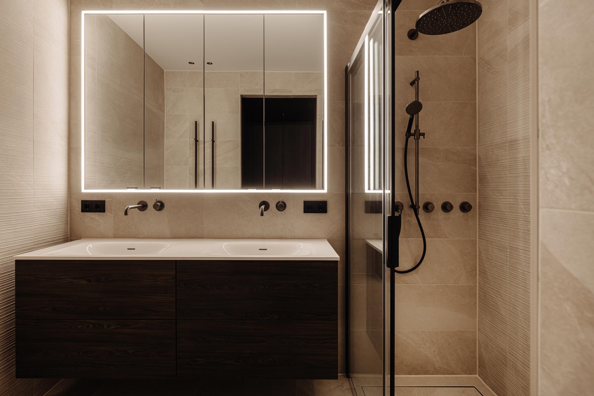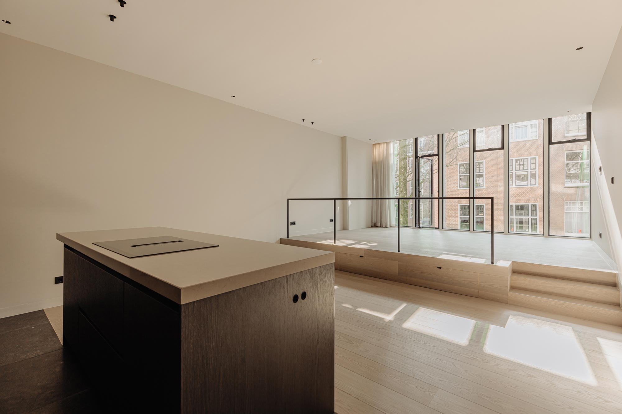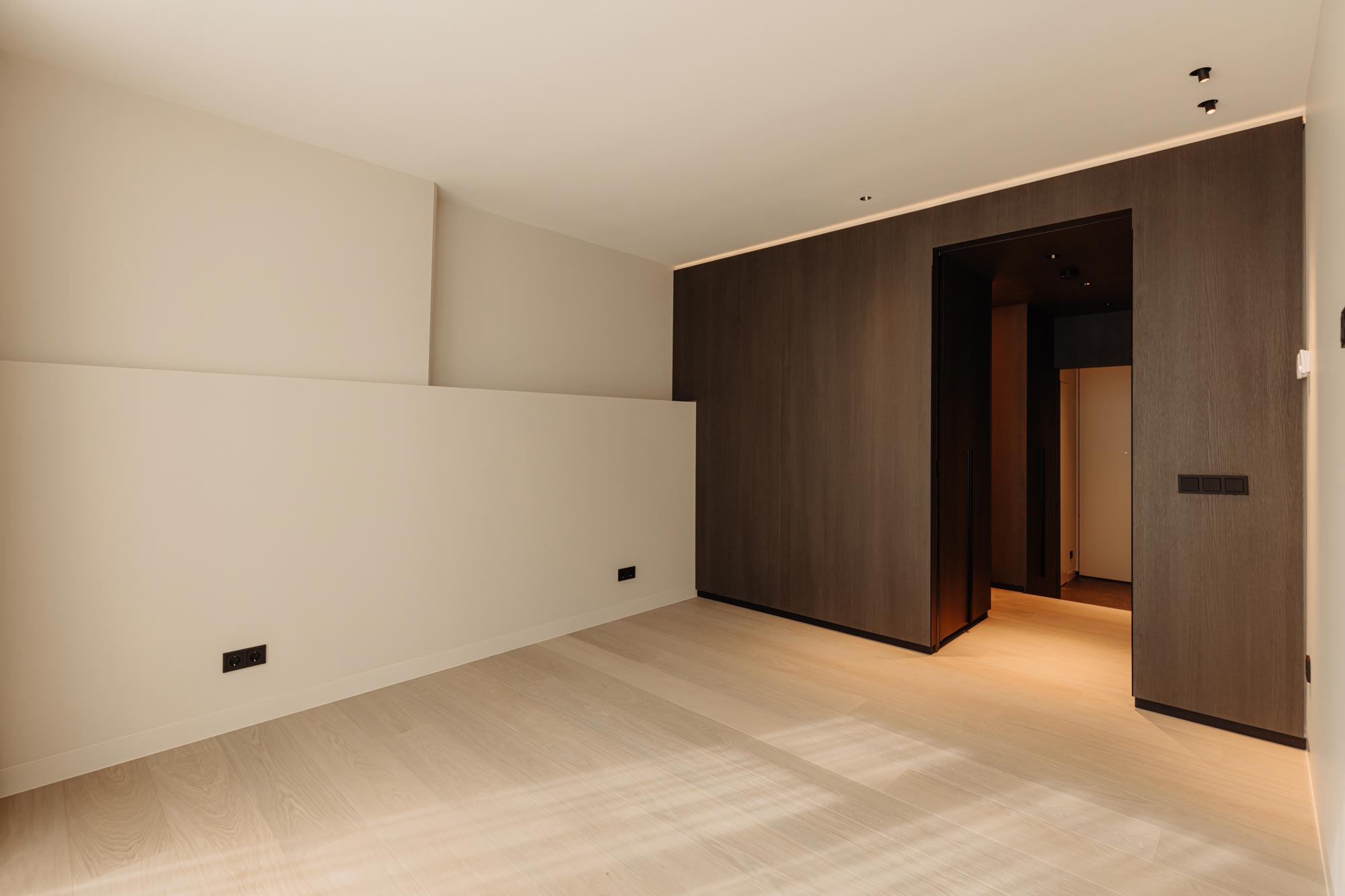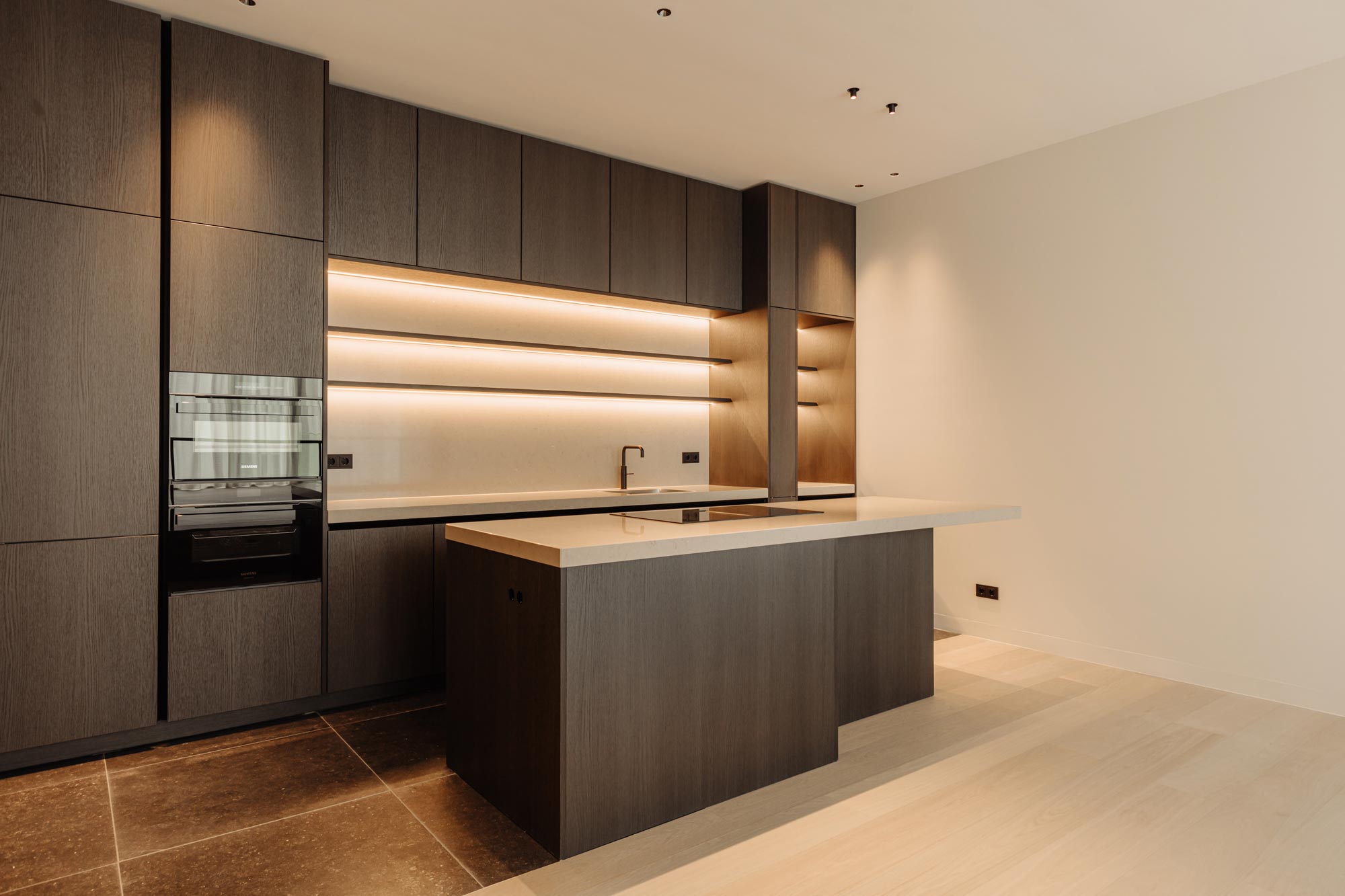Entrance, hall, technical room, fully tiled toilet room with sink and various accessories, wonderful Siematic open kitchen with cooking island, mood lighting and Siemens built-in appliances including an induction hob with integrated extractor, fridge-freezer, dishwasher, oven, oven/microwave, Pando wine cooler and a Quooker, split level living room with storage space, bedroom accessible from both sides, both via a subtle sliding door in the living room and via the aforementioned hall and a second hall also equipped with various illuminated wardrobes and with access to the beautiful bathroom, this attractively finished and illuminated bathroom has a duo washbasin, electric towel heater, walk-in shower and a mirror cabinet with all-round lighting. There is an associated separate storage room on the first floor.